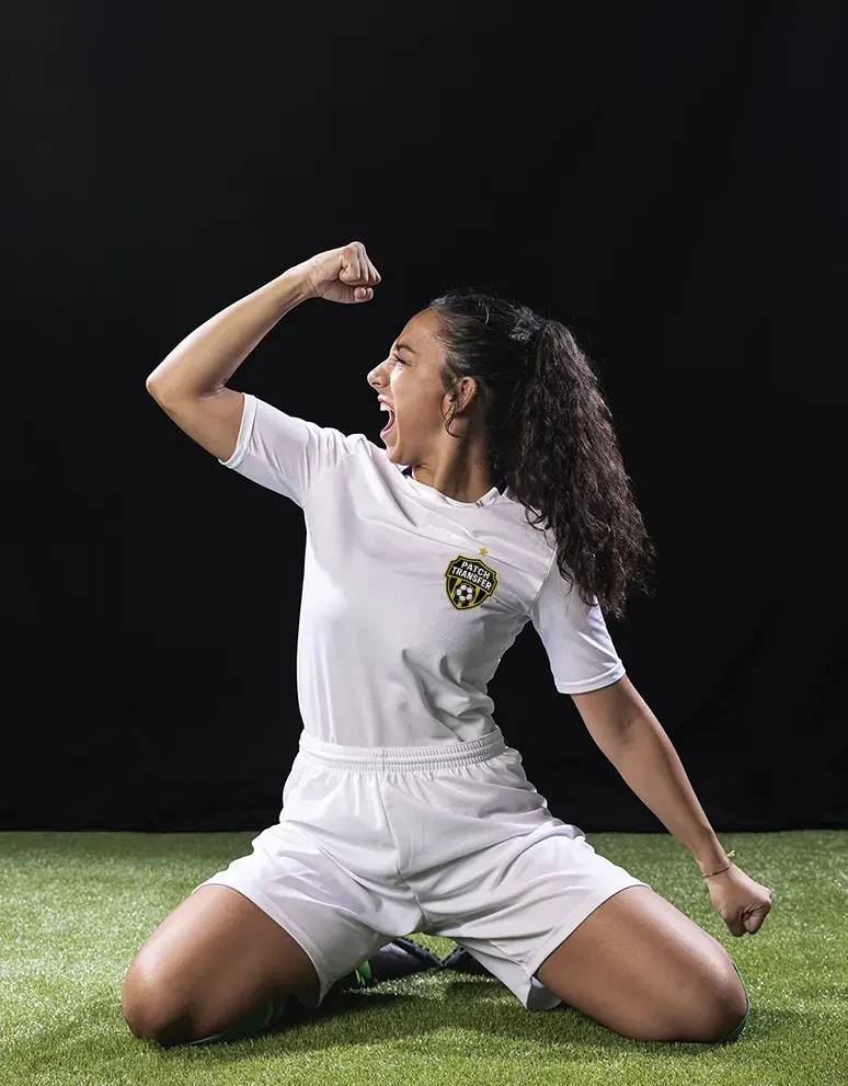 Patch 3D termocolante premium com alto relevo, excelente fixação e durabilidade superiores. Solução profissional para personalização de grandes marcas esportivas.